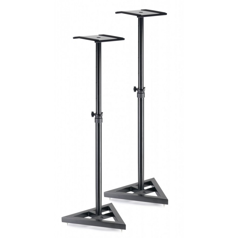 Two, height-adjustable, steel studio monitor or light stands
