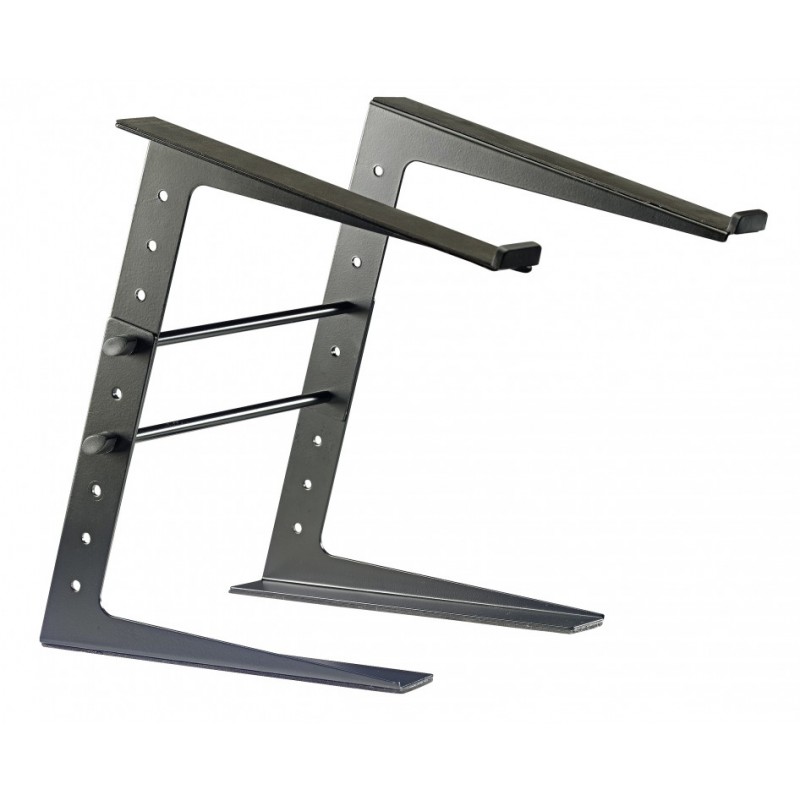 - Perfect for supporting your laptop, usb controller, CD players, mixing desk, etc... - Stable, solid steel construction - Scratch-resistant powder coating - EVA-coated, scratch safe no-slip support arms - Height adjustable in 5 positions, 3cm (1.2") apart - Min height: 23cm (9.5"), Max height: 35cm (13.8") - Base coated with non-slip EVA foam